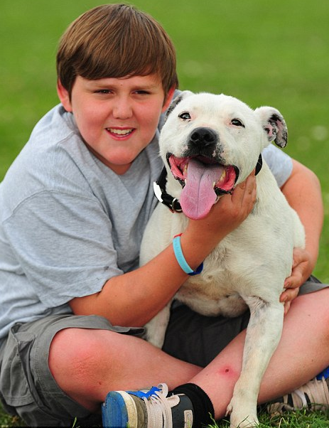 iba caminando con su perro por la orilla de un río cuando Bronk, un Staffordshire Bull Terrier, vio otro